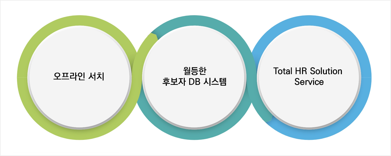 On/Off Line를 통한 광범위한 DB 구축 과학적 DB관리로 최단 시간 내 적합 후보자 선별 정확한 후보자 평가 및 추천 종합적 사후 관리 |